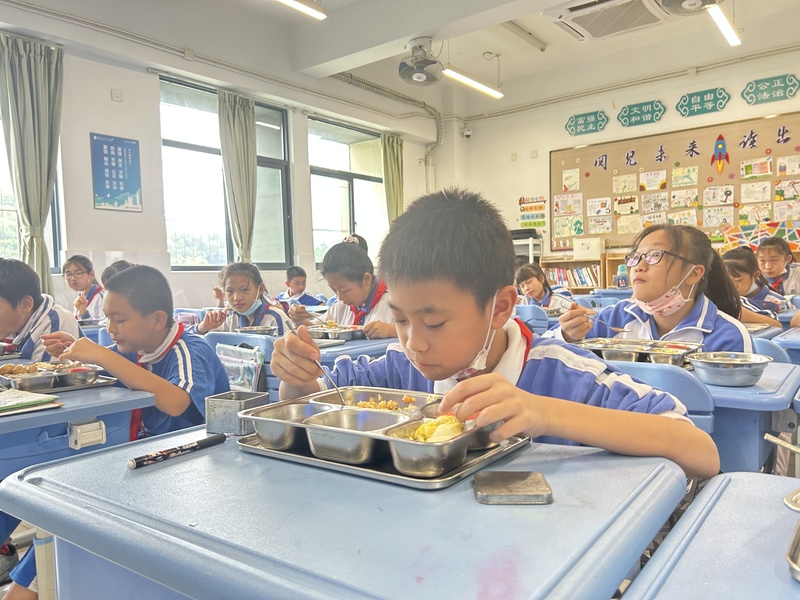 ▲学生正在开心地享用学生餐。深圳晚报记者 严文婷 摄