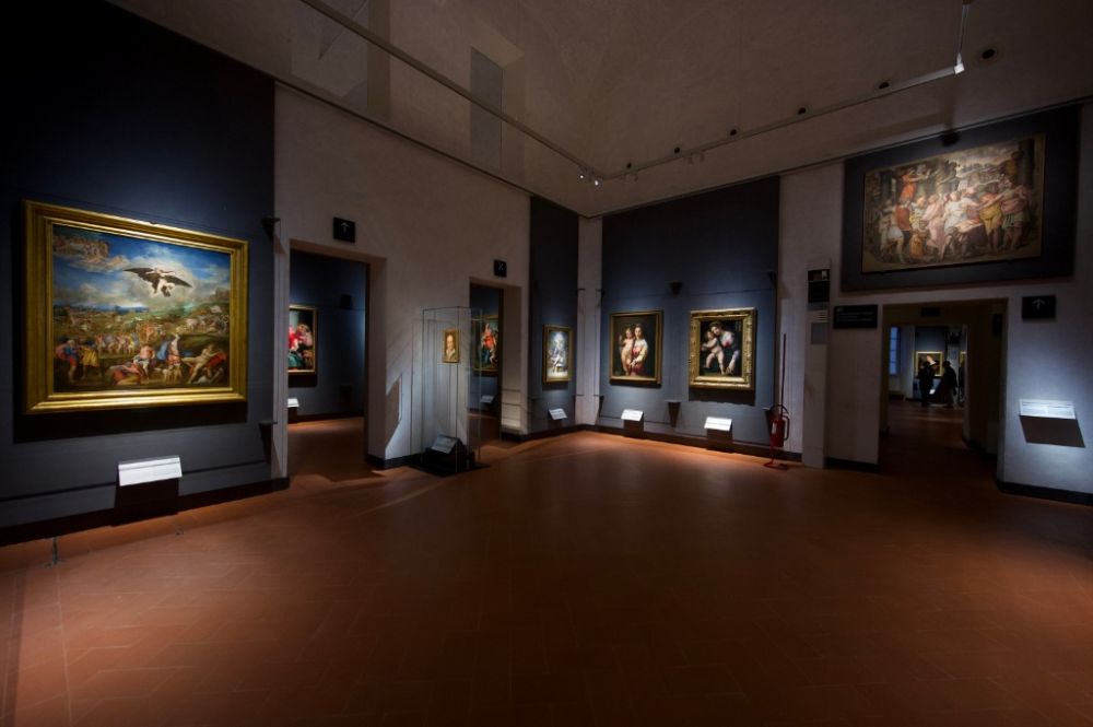 这是2021年5月4日在意大利佛罗伦萨拍摄的乌菲齐美术馆内的展室。新华社发