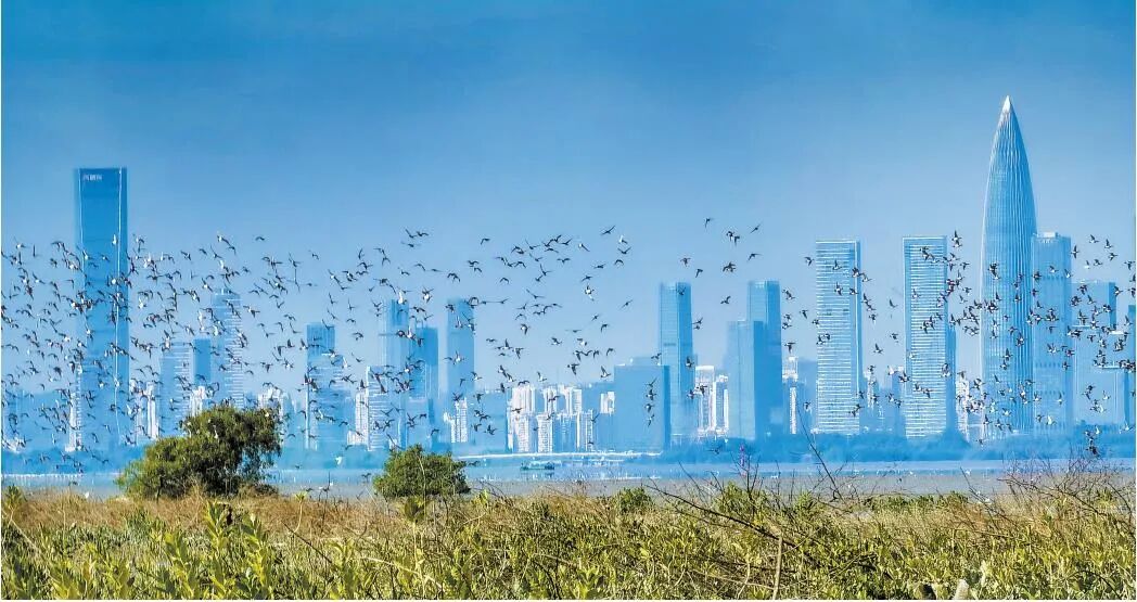 深圳拥有1997.4平方公里陆域和2030平方公里海疆,2000多万人口和30000多个物种在这里共栖。生机勃勃的福田红树林湿地,是“全球唯一都市城央原生态国际重要湿地”,与隔湾相望的香港米埔-后海湾国际重要湿地,共同为东亚-澳大利西亚迁飞大通道上的数以十万计的候鸟,筑起万里迁徙的温暖驿站。