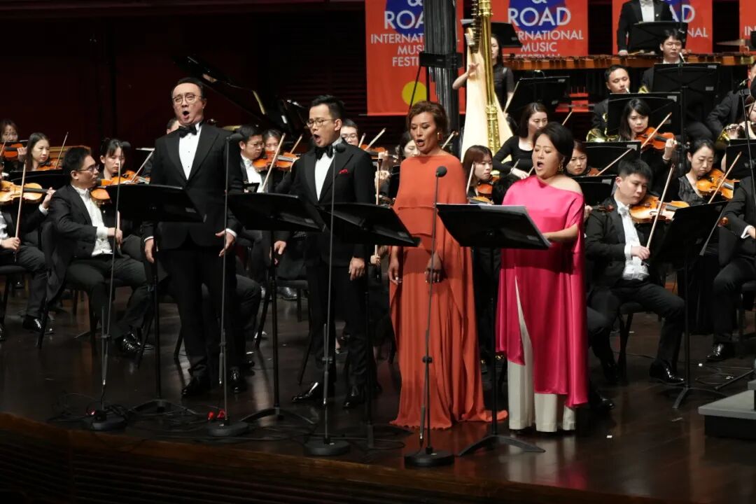 女高音歌唱家郭森与钢琴家爱德华多·图比尔、小提琴家劳伦·柯西亚、大提琴演奏家卡伦·科恰良共同演绎《飘舞的丝路》(摄像:韩墨)