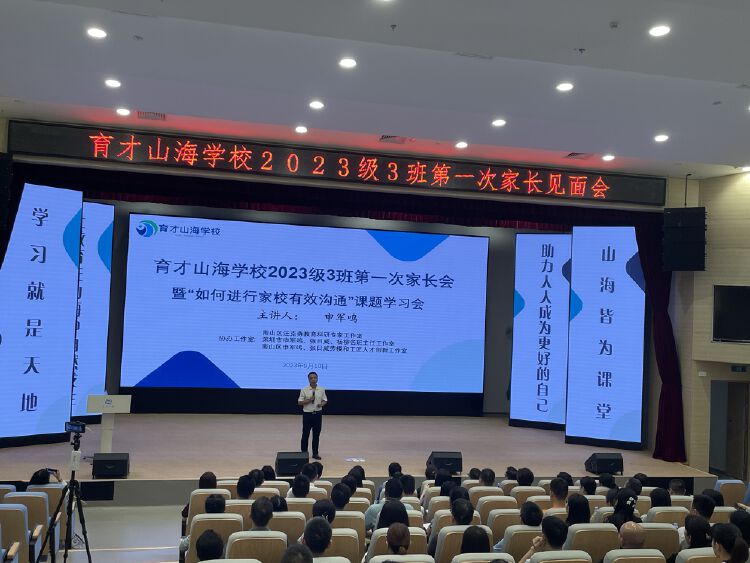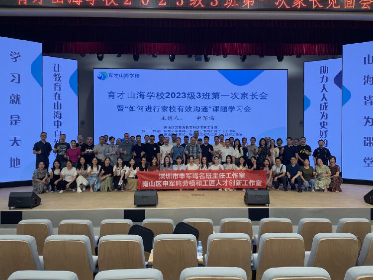 9月10日,恰逢第39个教师节,深圳市蛇口育才教育集团山海学校2023级3班在班主任申军鸣老师的精心组织下,在学校山海剧场举行了一场意义非凡的新生家长见面会。此次家长见面会,除了邀请7年级3班的家长参会外,还邀请了申军鸣老师上一届所带班级家委会核心成员,为本次家长见面会带来了不同视角的独特体验。