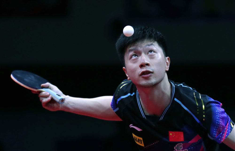9月10日,马龙在比赛中发球。新华社发(李相浩摄)