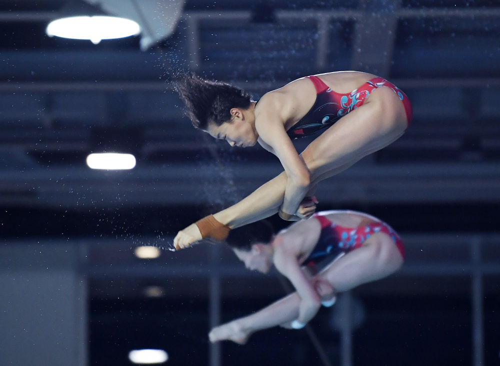 8月4日,陈芋汐/全红婵(上)在比赛中。新华社记者任鹏飞摄