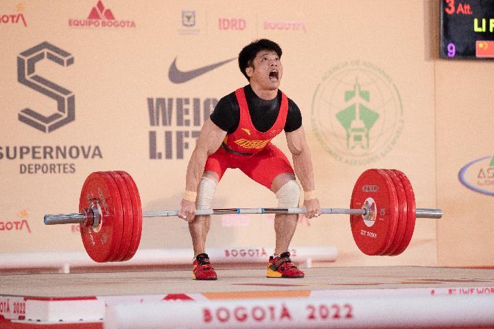 2022年12月7日,中国选手李发彬在挺举比赛中。新华社记者王天聪摄