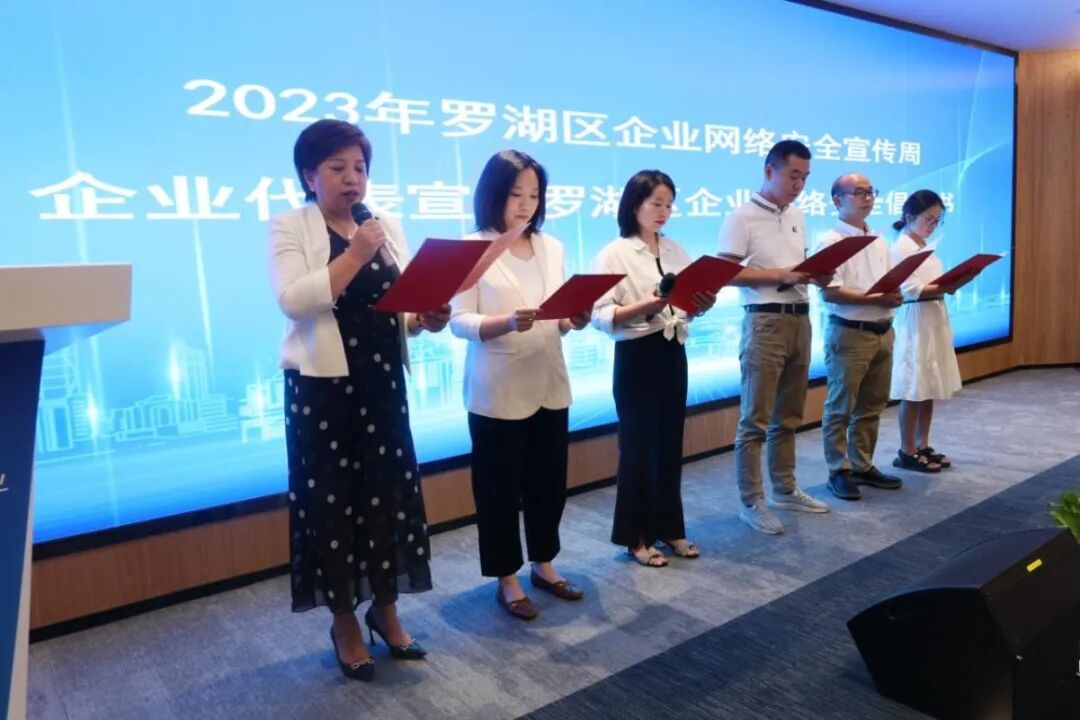 在活动现场,深圳本地宝、极限网络、合生网络、力维信息、快印客、中礼网等6家区互联网行业党委支部企业负责人,共同宣读《罗湖区企业网络安全倡议书》,倡导辖区企业及员工,共同遵守网络安全法律法规,落实企业主体责任,参与网络安全治理,加强用户个人信息保护,增强企业网络安全意识,为企业高质量发展保驾护航。