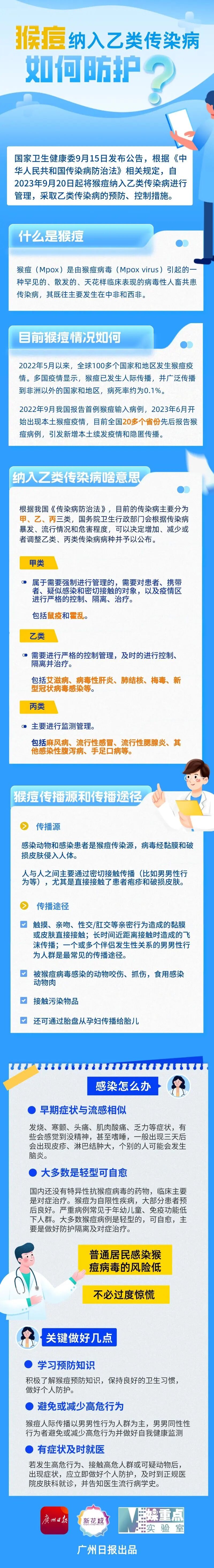 据国家卫健委公告,自2023年9月20日起将猴痘纳入乙类传染病进行管理。中疾控9月8日发布的检测情况显示,中国内地(不含港澳台)8月新增报告501例猴痘确诊病例,其中,首次报告5例女性病例。