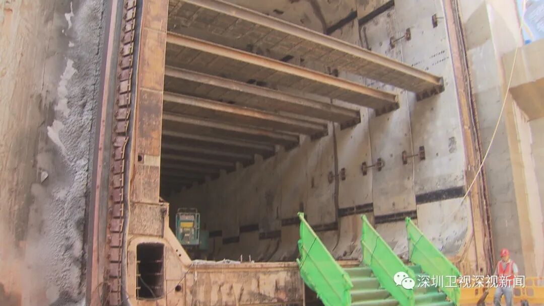 据介绍,该车站采用世界最大组合式矩形顶管机推进,该设备相当于四层楼高,目前通过该设备推通的隧道就是未来沙三站的站台层。