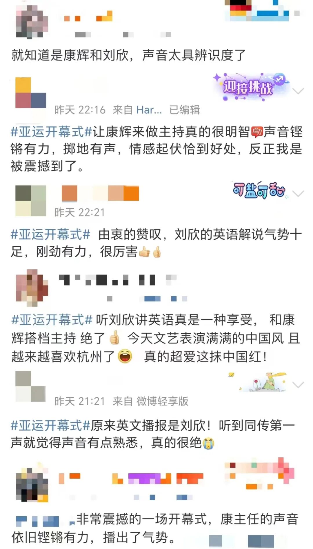 “女士们,先生们——”当字正腔圆又饱含热情的中英双语现场播报在杭州奥体中心体育场“大莲花”中回响,尽管只闻其声不见其人,这两个辨识度很高的总台声音也很快被网友认了出来。