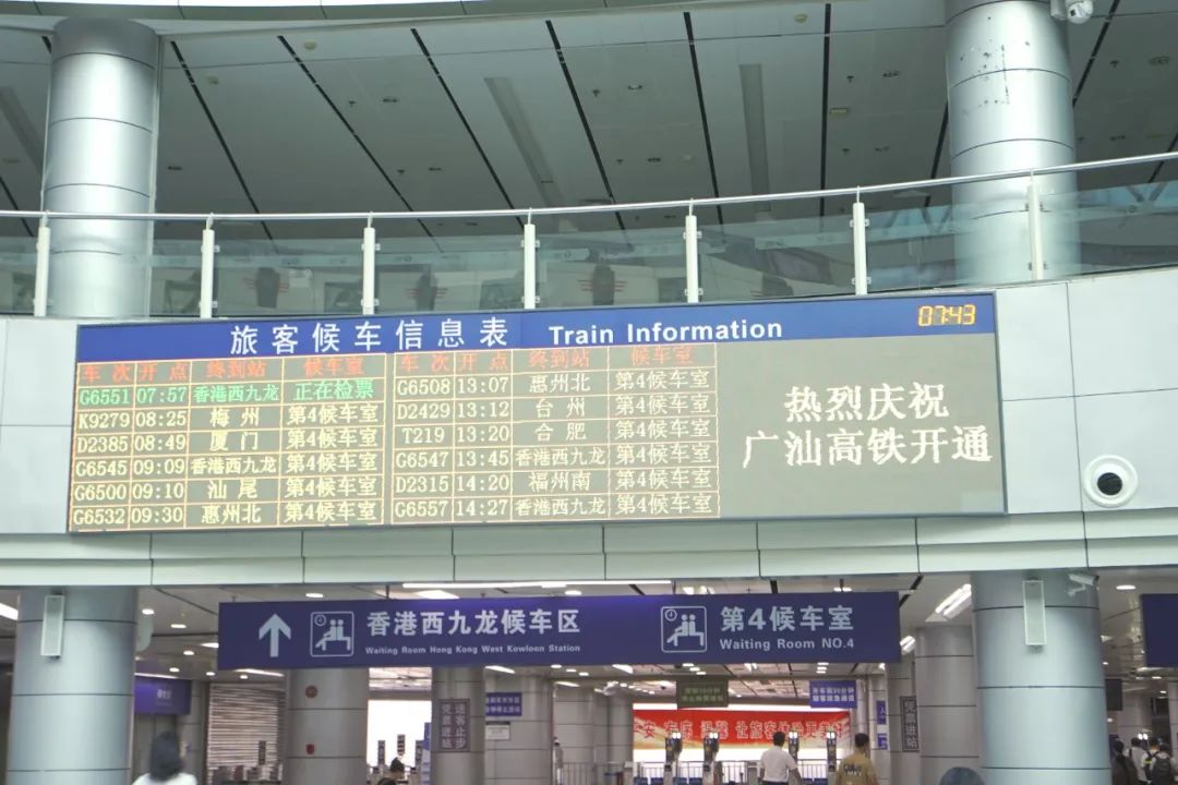 其中,广州东至河源东6对、惠州北5对、汕尾6对、揭阳3对、潮汕(汕头、梅州西)17对,广州东站至汕尾站间最快73分钟可达;深圳北至汕尾4对、潮汕(梅州西)2对,深圳北站至汕尾站间最快70分钟可达。