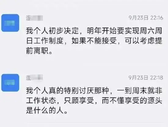 “明年开始要实行周六周日工作制度,如果不能接受可以考虑提前离职”。