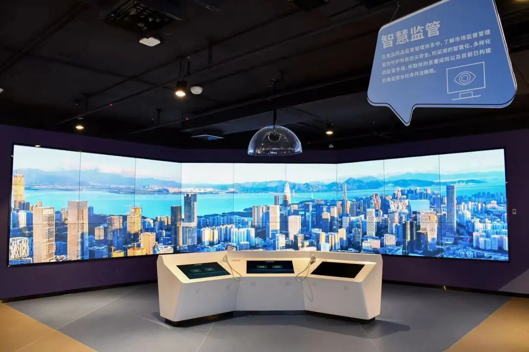 序厅以环幕投影的形式展示基地主题形象,结合趣味问答开启惊奇之旅;田园守护展区以户外露台微农业为亮点普及农田畜牧等知识;美味工坊展以声、光、电模拟的形式体验烹饪乐趣;闻香识酒区域为参观者带来嗅觉体验;高风险食材项目通过AR技术展示食材危害知识;最受学生群体喜爱的药丸之旅项目通过4D影片化身药丸开启人体之旅。食药科普基地目标成为市民满意的食药科普宣传阵地、“网红”打卡点和食药科普宣传的“深圳名片”。