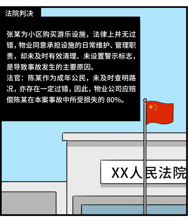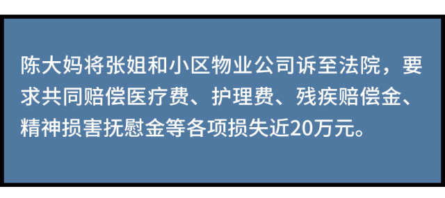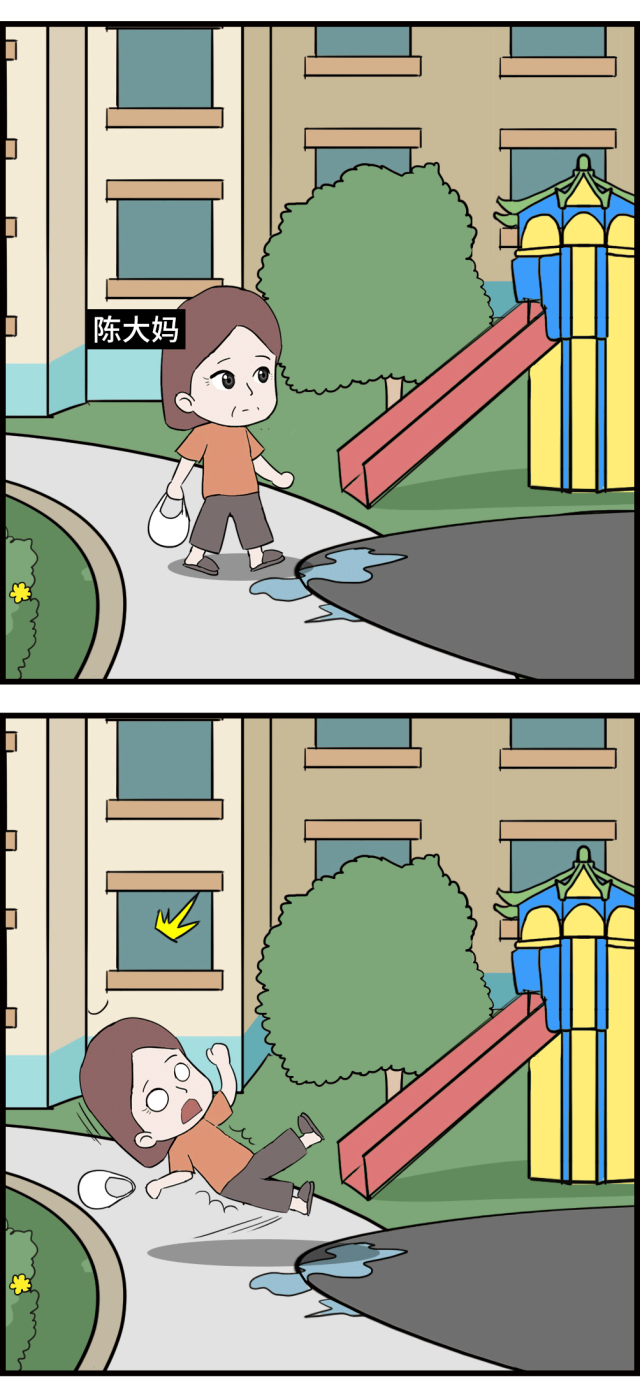 对于陈大妈而言,在小区踩到湿滑的脚垫导致滑倒摔伤,自然有人应为此负责,于是将购买游乐设施的张姐与负责设施清洁、管理的物业一并相告。