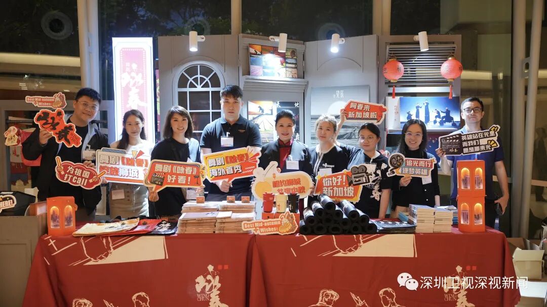 明月照狮城。9月29日晚7点多,深圳卫视&直新闻记者在剧院大厅看到,“咏春士多”已换上中秋限定版“皮肤”,以灯笼、花灯、装饰板装点,现场充满中秋节的氛围,吸引了大批观众前来排队购买周边产品。
