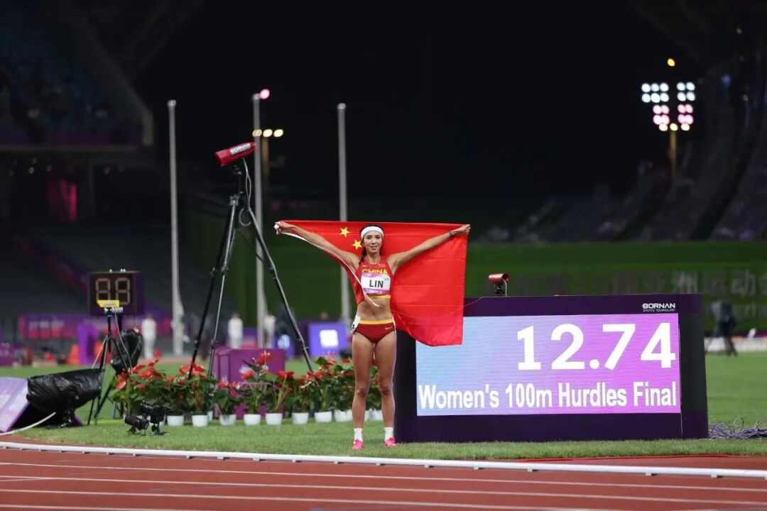 10月1日晚,在杭州亚运会女子100米栏决赛中,中国选手林雨薇以12秒74的成绩夺得冠军。