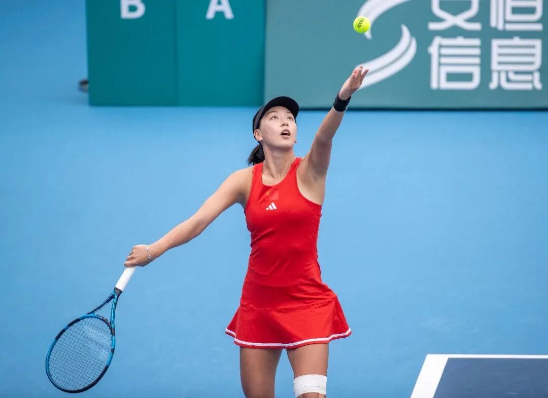 “深圳小花”王欣瑜在亚运会网球赛场上。
