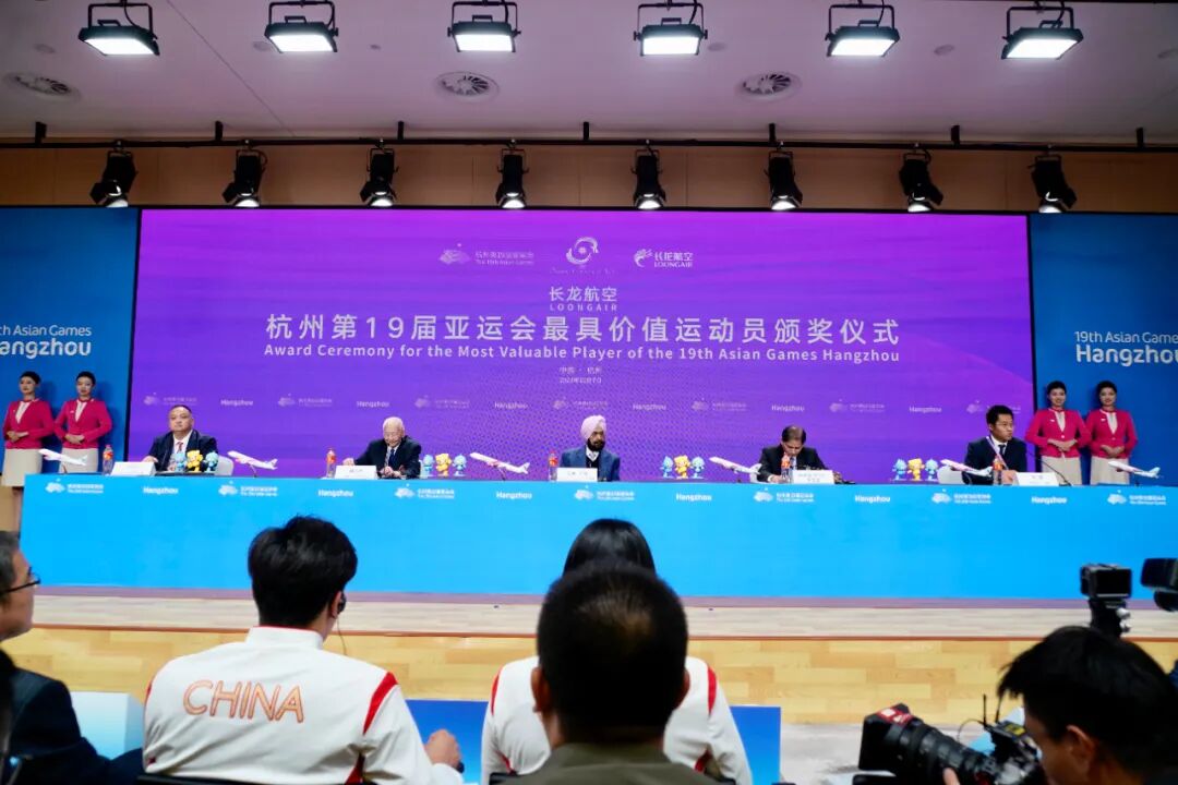 亚奥理事会代理主席拉贾·兰迪尔·辛格、亚奥理事会终身名誉副主席魏纪中、亚奥理事会代理总干事维诺德·库马尔·帝瓦里、亚奥理事会媒体与广播电视部主任周健、长龙航空董事长刘启宏出席发布会和颁奖仪式,中外媒体记者及运动员代表参与。