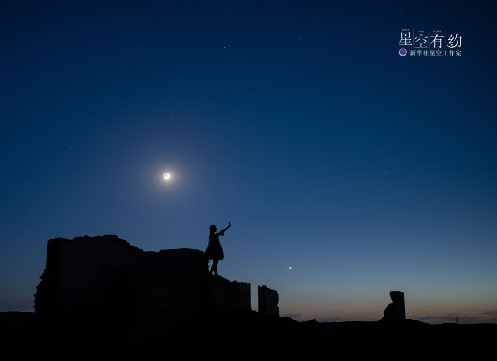 重庆市天文摄影爱好者周扬宋丹2021年8月12日在青海冷湖拍摄的金星伴月。(星联CSVA供图)