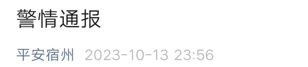 10月13日深夜,安徽宿州市公安局官方公众号“平安宿州”发布警情通报,通报一起开枪警情。