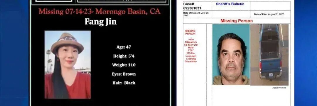 加州圣贝纳迪诺县警方已发布了寻人启事,向网民公开征集有关金芳和约翰的行踪,金芳的女儿也在网上发了多条寻人启事,希望网友帮助寻找母亲。