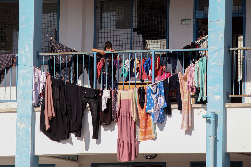 这是10月15日在加沙地带南部城市汗尤尼斯的一所学校拍摄的流离失所的儿童。新华社发(里泽克·阿卜杜勒贾瓦德摄)