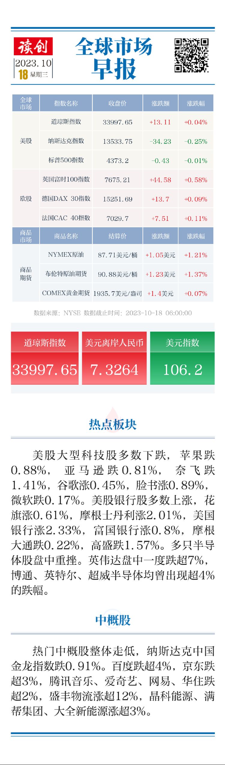 热门中概股多数下跌,纳斯达克中国金龙指数跌0.91%。百度跌超4%,京东跌超3%,爱奇艺、腾讯音乐、网易跌超2%,哔哩哔哩跌超1%,微博、拼多多、阿里巴巴、理想汽车小幅下跌。满帮涨超3%,富途控股、小鹏汽车、唯品会、蔚来小幅上涨。