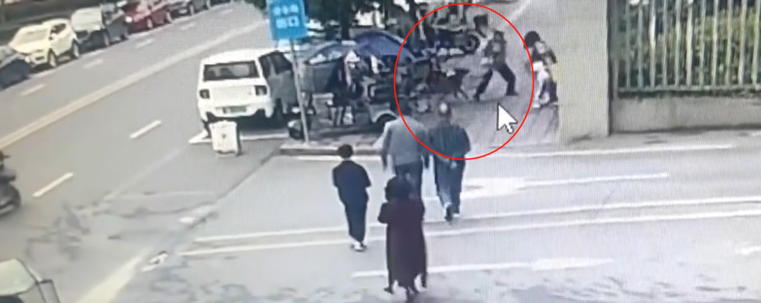 从该网友发布的视频画面可以看到,两个大人带着两个小孩从一个小区门口经过,在小孩蹦跳离开之际,一条未拴绳的狗突然窜出,一直往小孩身上扑。大人试图恐吓,并抱着小孩不停躲闪,该狗疑咬住小孩腿部位置一直未松口。