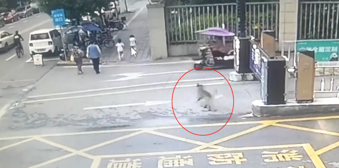 随后其他路人上前帮忙,物业人员也赶来持铁锹将狗赶跑。狗绕了一圈又冲回小区门口站着的人群中,后被物业再次赶远。
