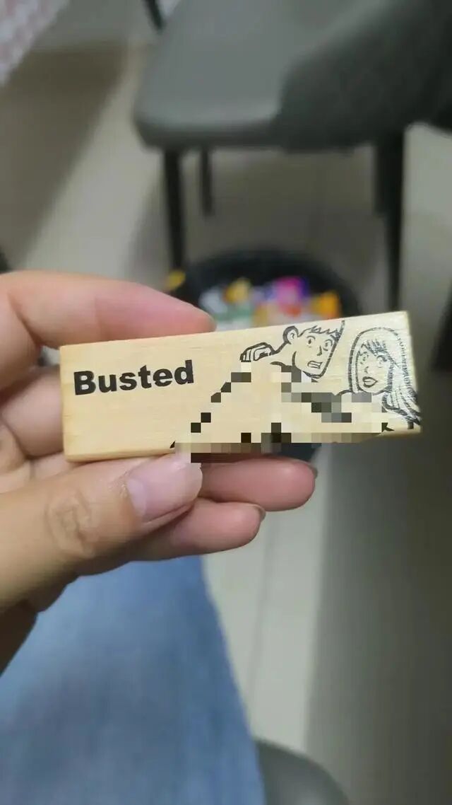 近日,湖南岳阳的屈女士在某网店给家里两个小孩购买了一袋儿童积木。然而,在清洗积木的过程中,屈女士发现其中一块积木上印有疑似涉黄的图案:一对男女吃惊的图案配上一旁的英文“busted(被当场逮住)”,让人细思极恐。“看到儿童积木上面印有这种图案,感觉心里很不舒服。”