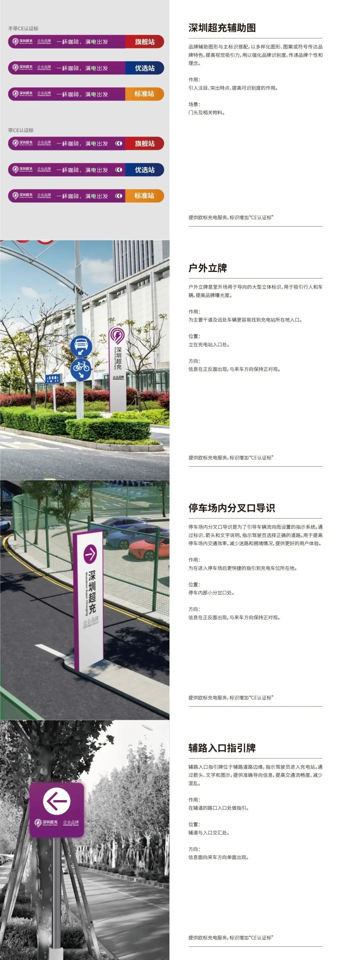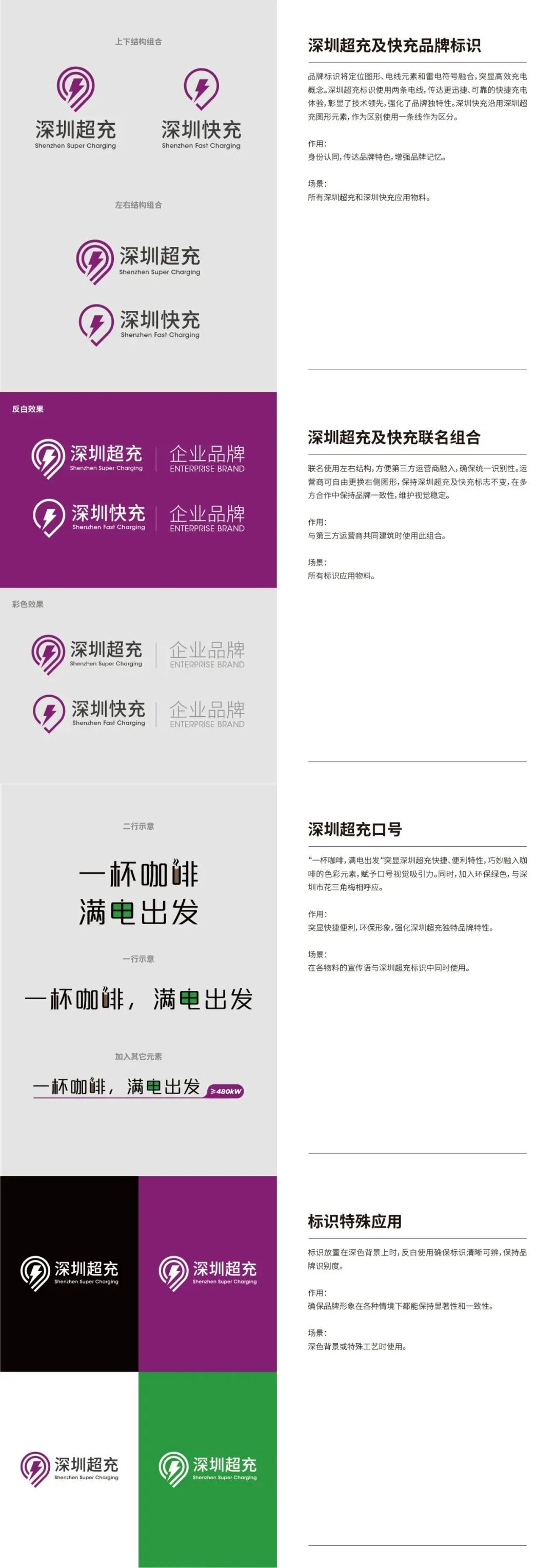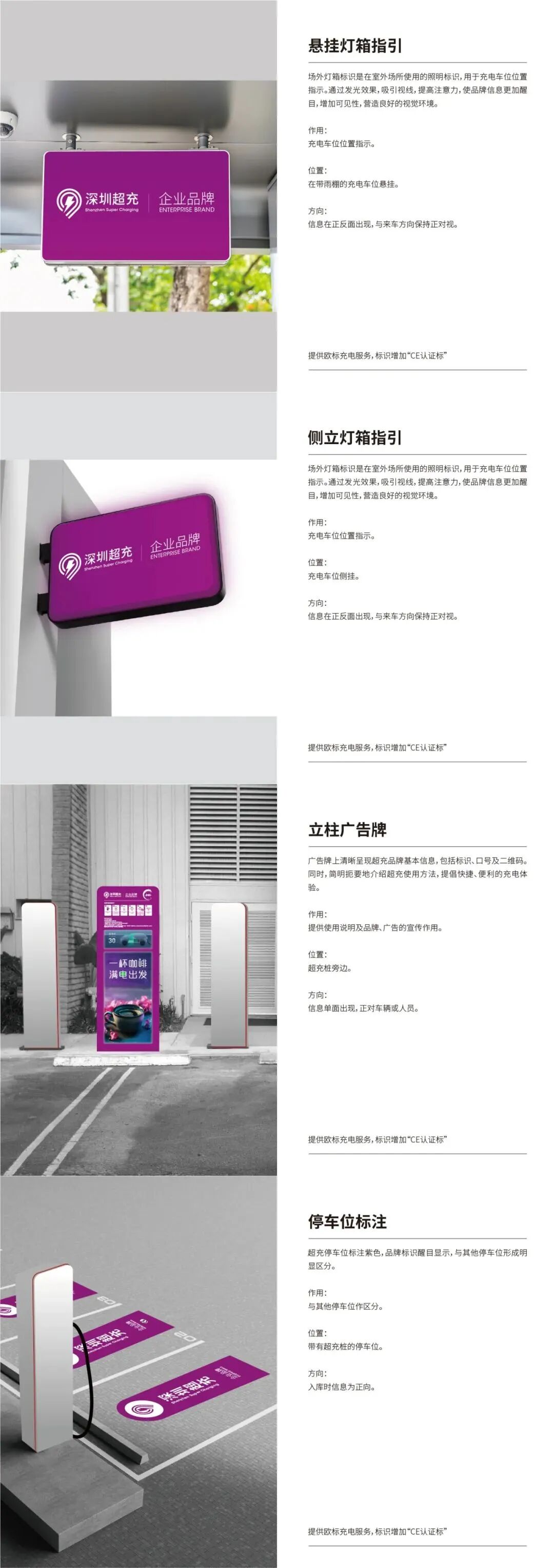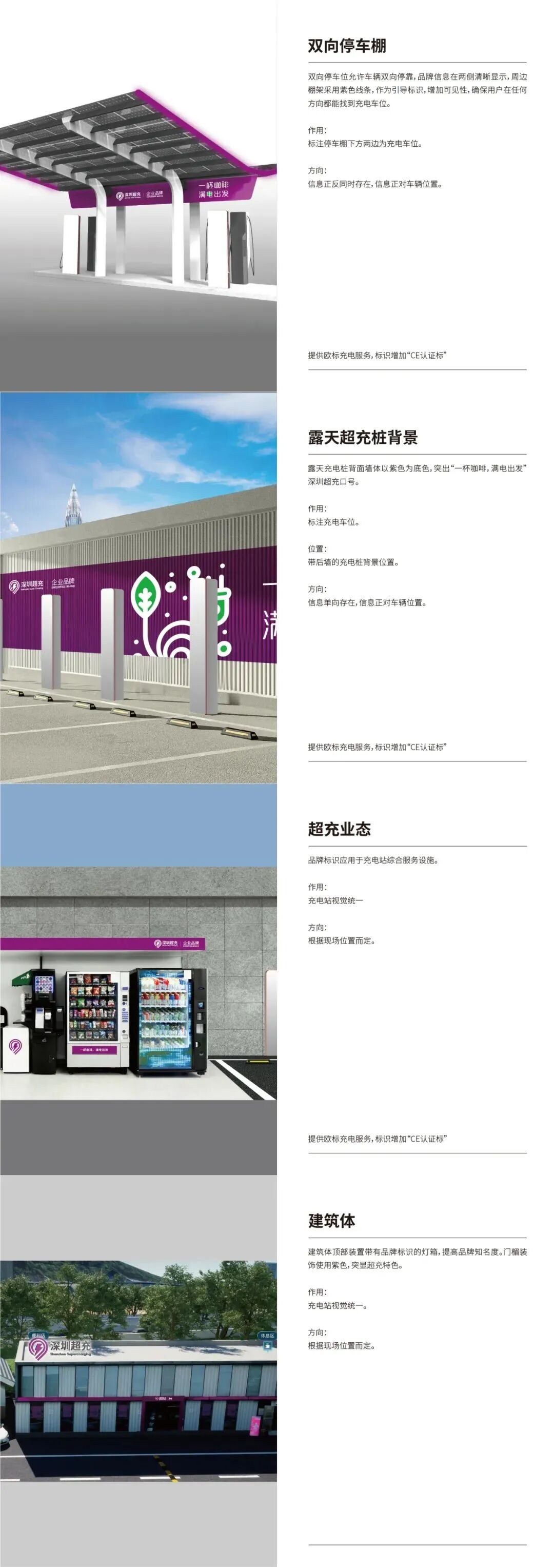 同时,为树立国内首个城市级充电站形象标杆,深圳市发展和改革委员会发布了深圳市新能源汽车充电设施公共品牌标识统一形象设计。该标识品牌以深圳市市花三角梅紫色为主调,传递环保和可持续发展理念。通过视觉上的契合,体现对城市生态与绿色未来的承诺,建设世界领先的城市级新能源汽车充换电网络,引领深圳市迈向一个更加可持续的明天。