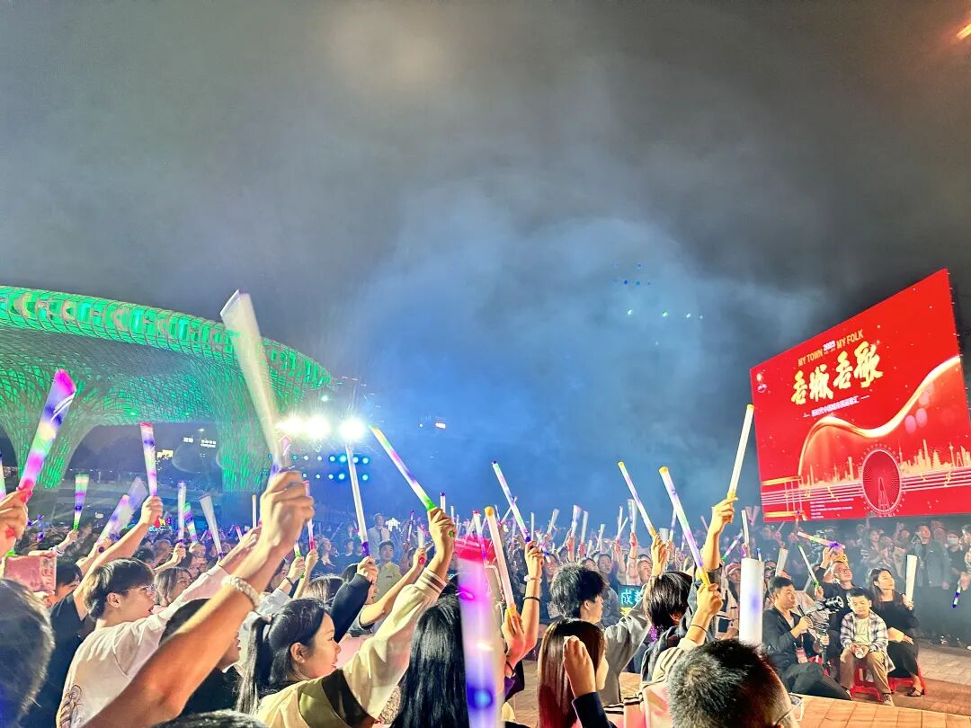 值得一提的是,深圳欢乐港湾作为本次启动歌会的场地,舞美设计打破传统音乐活动复杂的舞台布景,在靠海边区域设立了一个以草地、天空、“湾区之光”摩天轮为衬托的大自然风格表演舞台,让民谣元素融入其中。现场,演出舞台与花草、海风、夜空交相辉映,民谣音乐与自然融为一体,为观众展现独特的民谣魅力。