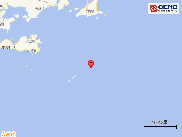 据中国地震台网正式测定,10月23日3时20分在广东汕头市南澳县海域发生5.0级地震,震源深度10公里,震中位于北纬23.32度,东经117.39度,距海岸线最近约27公里。