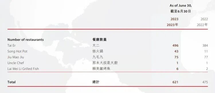 截至2023年6月30日,太二酸菜鱼门店总数量达496家。官网显示,太二酸菜鱼在深圳门店数量现为42家,多分布在万象汇、COCOPARK、卓悦汇、壹方城等知名商圈。