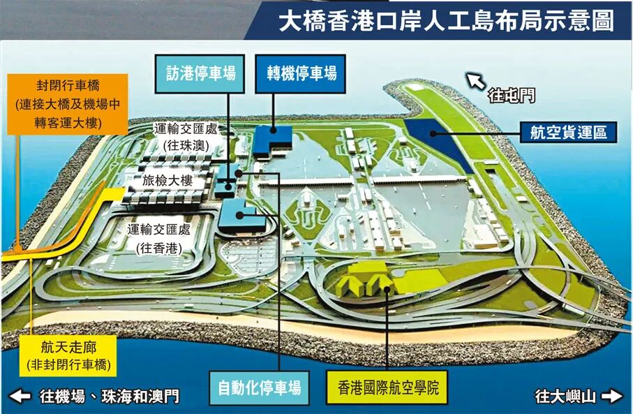 大桥香港口岸人工岛布局示意图 图源:香港文汇报