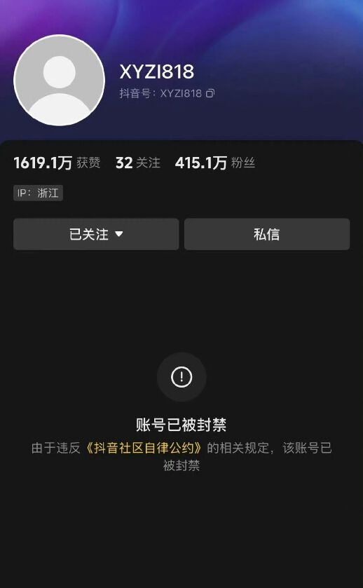 11月2日,经记者查询发现,辛巴在抖音的主要账号“XYZI818”被封禁。目前,已经无法在抖音上搜索该账号信息,只能搜索到一些辛巴粉丝创建的辛巴相关账号。数据显示,辛巴在抖音的粉丝量超415万。