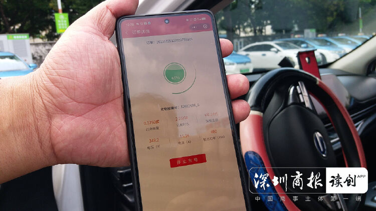 一位刚开始充电的司机告诉记者,平时中午都会来此充电,顺便休息一会。他的车辆只能使用快充,从低电量到充满差不多一个小时。其手机显示,当天车辆初始电量为66%,在充电2.2分钟后,已充0.1250度电,费用为0.14元。记者注意到,在软件页面中还明确提示充电桩的总功率为480千瓦,这也意味着它是一根具备超充功能的桩。