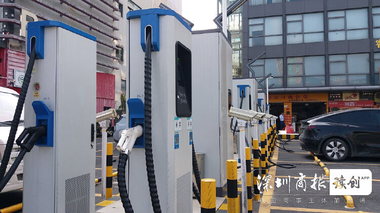 石岩街道塘头路口的充电站每天大概有三百多辆汽车进场充电。