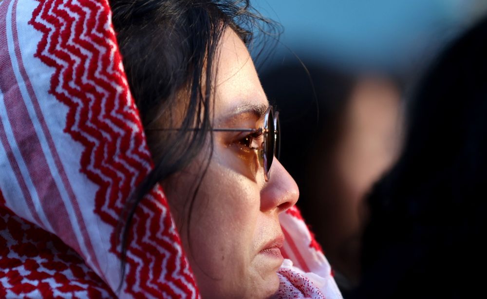 11月11日,在英国伦敦,一名女子听到在巴以冲突中遇难的儿童姓名时落泪。新华社记者 李颖 摄