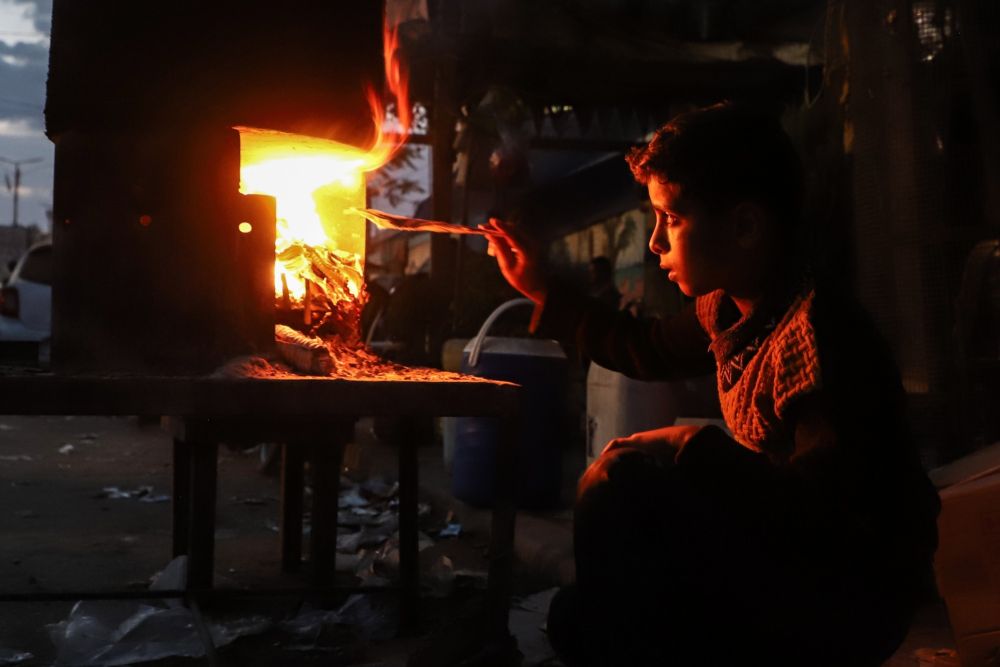 11月11日,一名男孩在加沙地带南部城市汗尤尼斯街头用柴火做饭。新华社发(里泽克·阿卜杜勒贾瓦德摄)