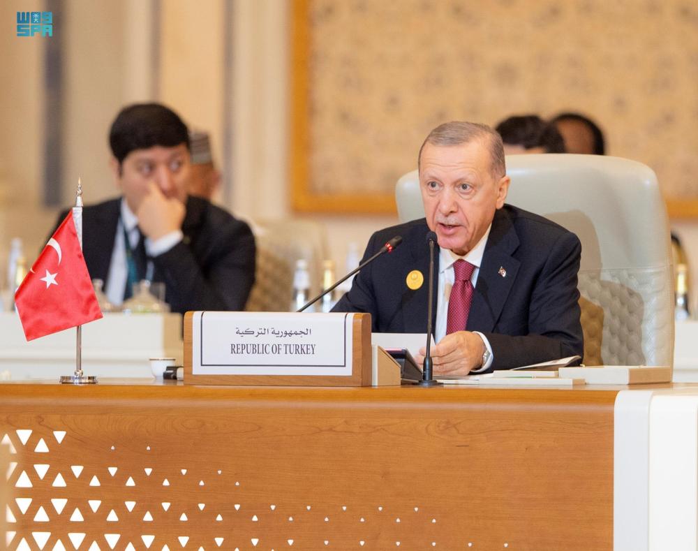 11月11日,在沙特阿拉伯首都利雅得,土耳其总统埃尔多安出席阿拉伯-伊斯兰国家领导人联合特别峰会。新华社发(沙特通讯社供图)