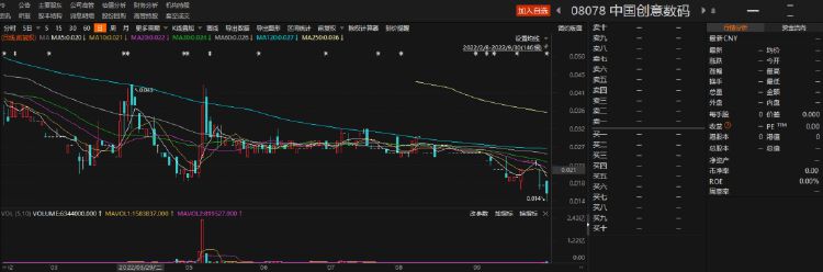 以中国创意数码为例,该公司是一家香港创业板公司,公司股份自2022年10月3日起已停止买卖,根据《GEM规则》第9.14A条,若公司未能在今年10月2日前复牌,港交所可将该公司除牌。截至2022年9月30日,该公司收盘价为0.016港元/股,总市值仅为600万港元左右。