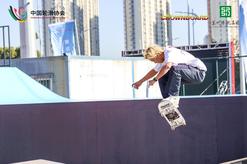 全国滑板锦标赛19日在苏州落幕,在杭州亚运会上夺冠的15岁广东选手陈烨在男子碗池项目中摘金。