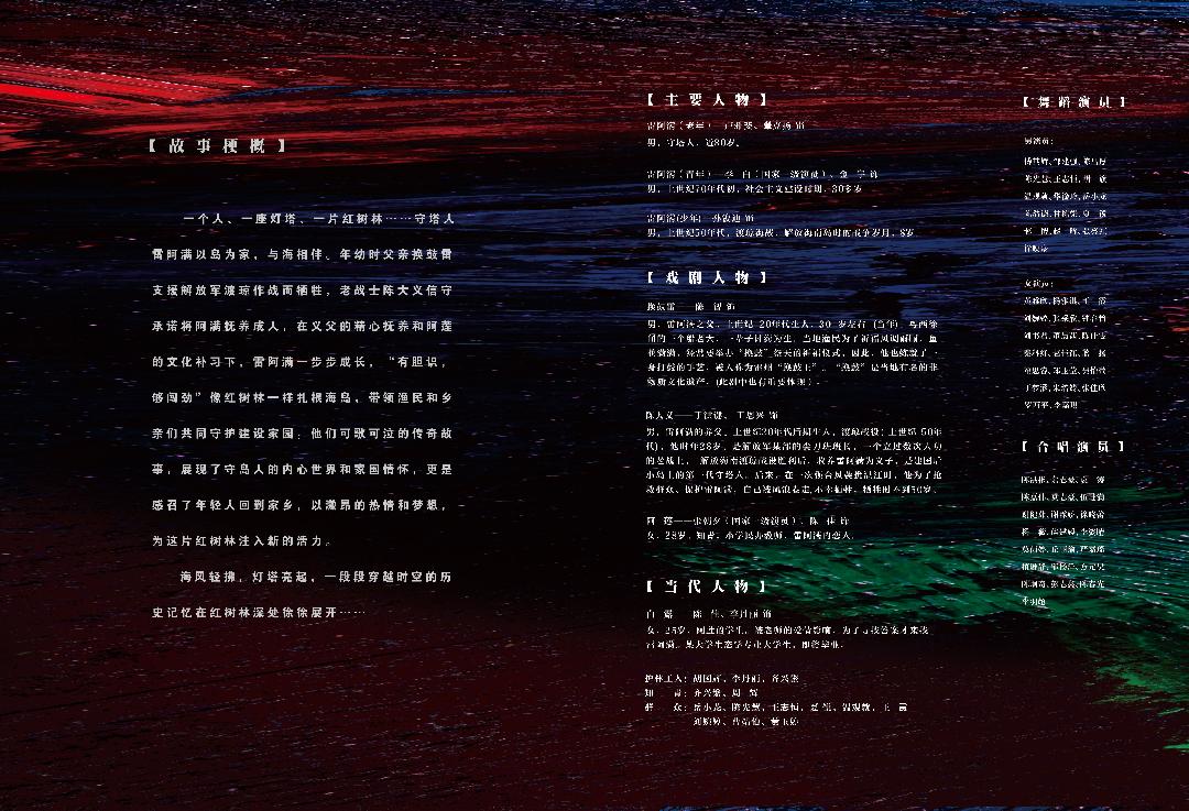 海风轻拂,灯塔亮起,一段段穿越时空的记忆在红树林深处徐徐展开......原创音乐剧《红树林深处的灯塔》由国家一级导演裘华松担任总导演,广东省流行音乐协会主席高翔作曲,剧本由周军创作,以歌唱、舞蹈、戏剧对白、舞美为重要表现手段,讲述了革命后代雷阿满为了恪守义父陈大义的愿望,放弃了上大学的机会,与心爱的姑娘分开,选择扎根海岛数十年,像灯塔一般守护着红树林,为过往船只指明方向。他们可歌可泣的传奇故事,展现了守岛人的内心世界和家国情怀,更是感召了年轻人回到家乡,以激昂的热情和梦想,为这片红树林注入新的活力。