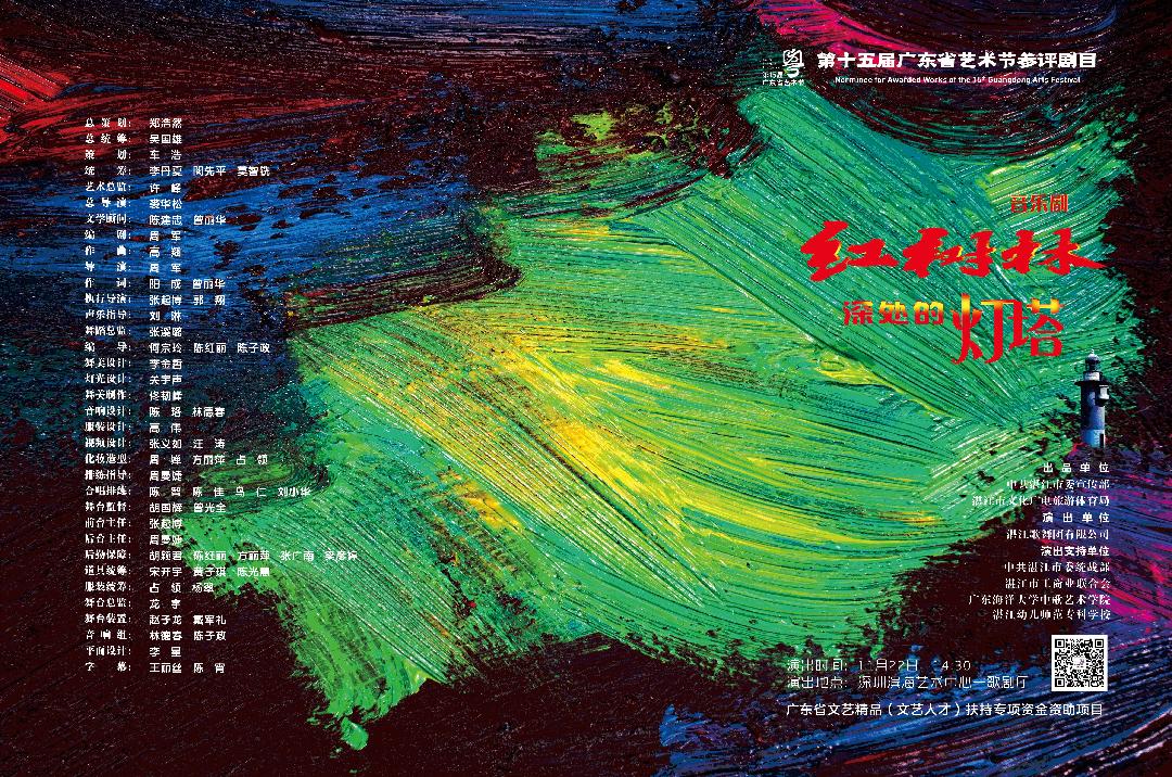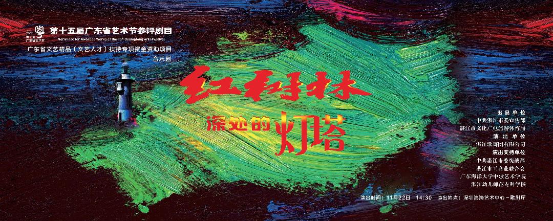 11月22日下午,由中共湛江市委宣传部、湛江市文化广电旅游体育局出品,中共湛江市委统战部、湛江市工商业联合会支持,湛江歌舞团创排的原创音乐剧《红树林深处的灯塔》在深圳滨海艺术中心成功演出,用精湛的艺术讲好“湛江故事”,演绎“红树林精神”。日前,该剧圆满完成第十五届广东省艺术节大型舞台艺术作品终评工作。