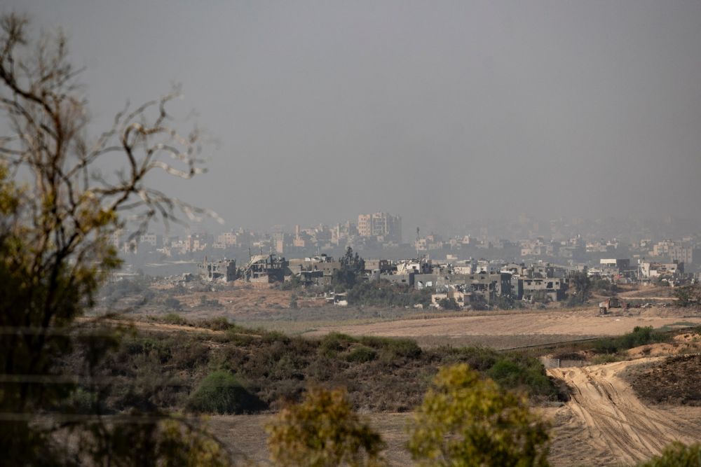 这是11月24日在加沙边境以色列一侧拍摄的停火生效后的加沙北部情况。新华社记者陈君清摄