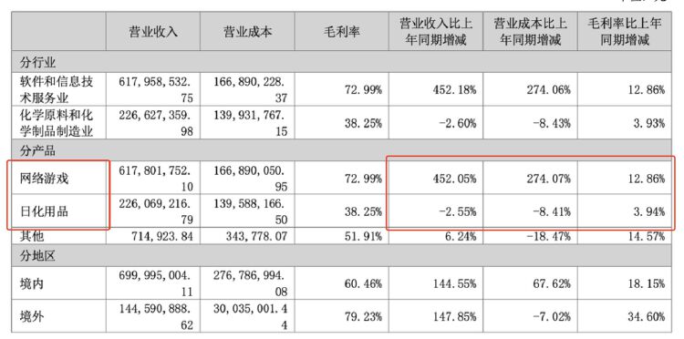 其2023年半年报显示,分产品来看,名臣健康网络游戏的营收同比大幅增长,日化用品的营收则同比小幅下降。
