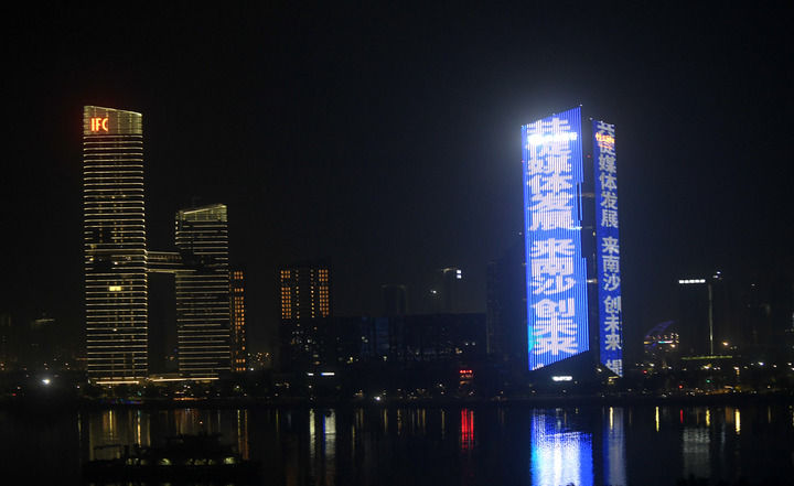 12月2日,广州南沙地标电子屏亮灯迎接世界媒体峰会。新华社记者 卢汉欣 摄