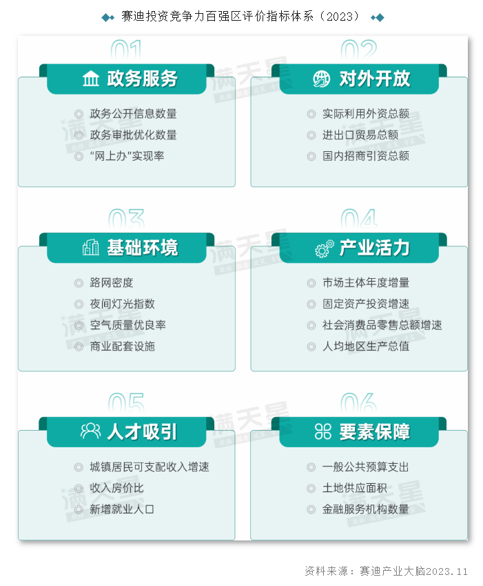 据了解,本次评价构建了政务服务、对外开放、基础环境、产业活力、人才吸引、要素保障6个一级指标及20个二级指标的评价体系,对全国除直辖市和港澳台地区外的900余个市辖区展开综合评价。