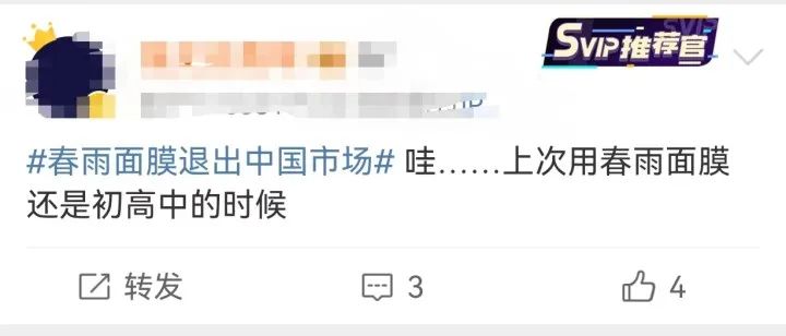 春雨的系列产品中,经典款“蜂蜜面膜”在当时的大学生群体中几乎人手一片。话题上热搜后网友们纷纷感慨,这款面膜以前真的很火,没想到也要退出中国市场了,还有网友表示自己现在也还在用。
