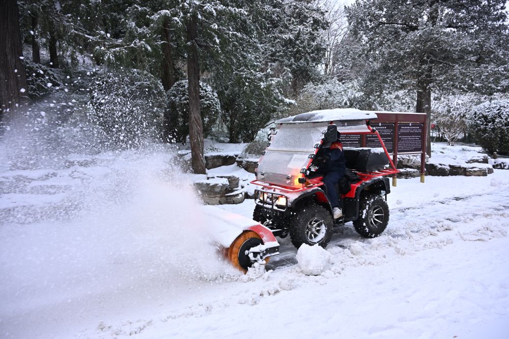 12月11日早晨,景山公园工作人员驾驶除雪车作业。新华社记者 李鑫 摄