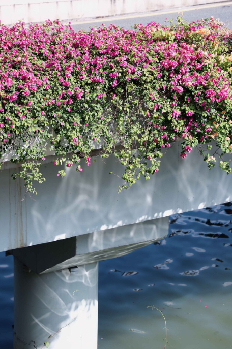 ▲ 整座桥被三角梅瀑布环绕。深圳晚报记者 余冕 摄